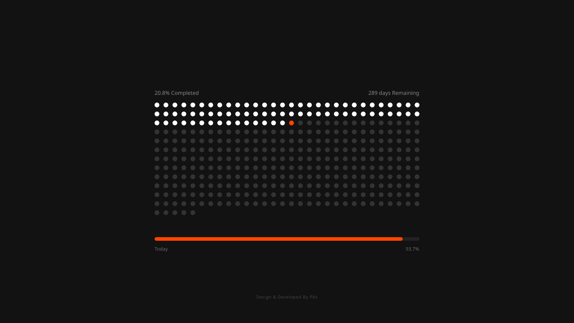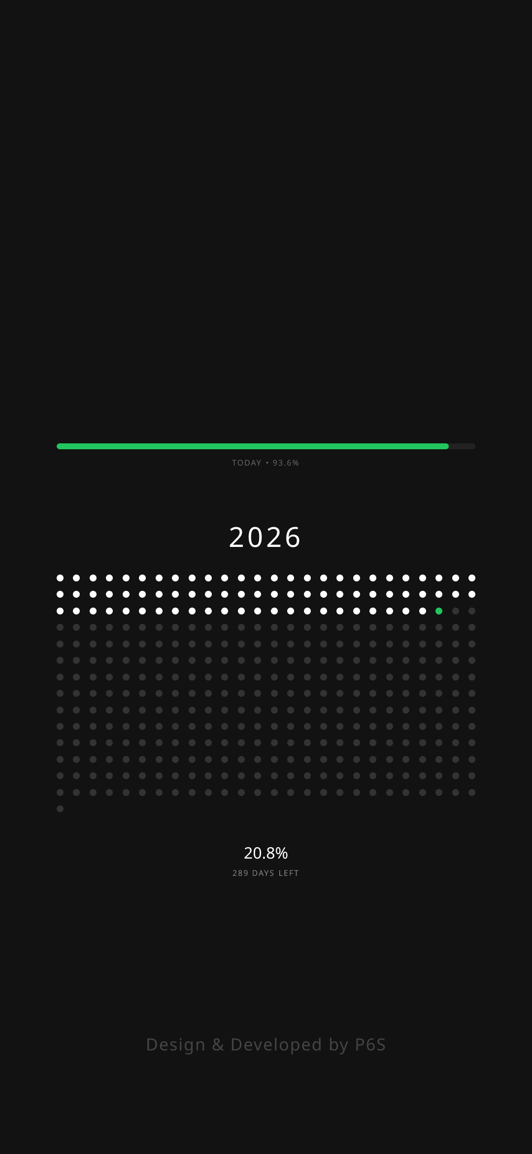 The big picture. A dot for every day of the year, color-coded by your journey.