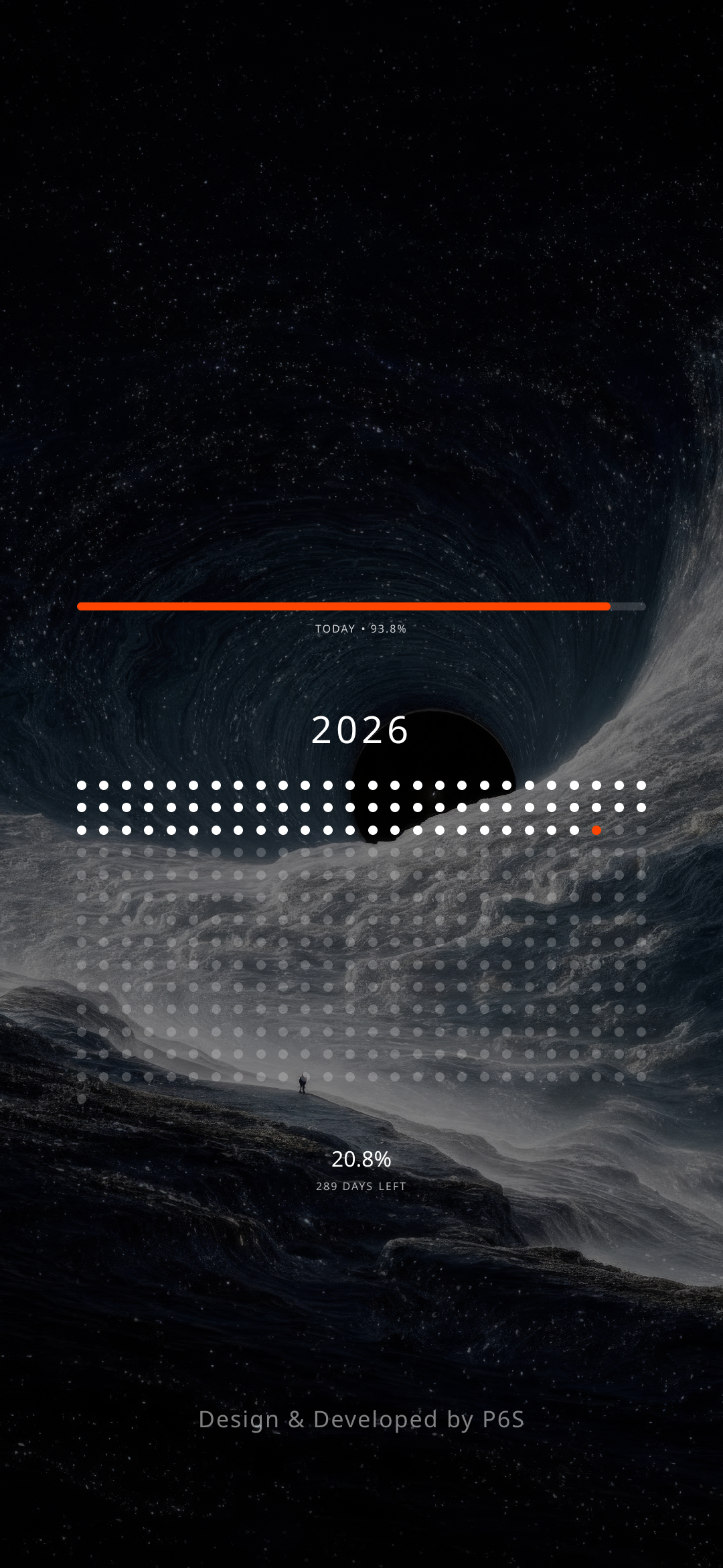 The year grid overlaid on a deep cosmic background.